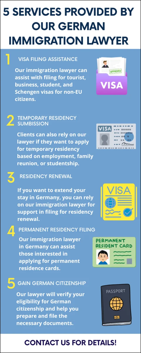 Our immigration lawyer in Germany can offer information on the types of visas available for foreigners moving to this country.