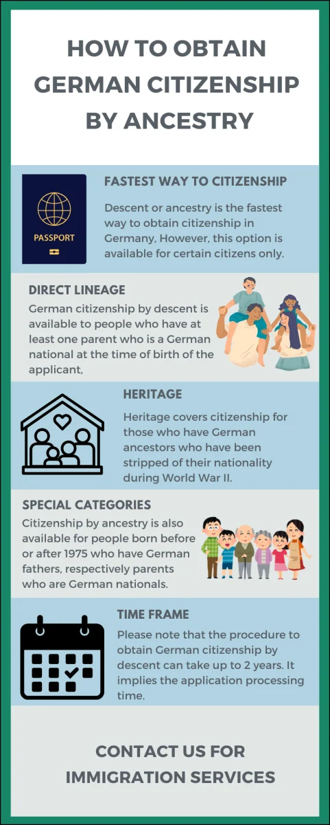 The principle of ancestry in Germany is not as simple as in other countries, which is why if you are interested in acquiring citizenship this way, you can rely on our immigration law firm.
