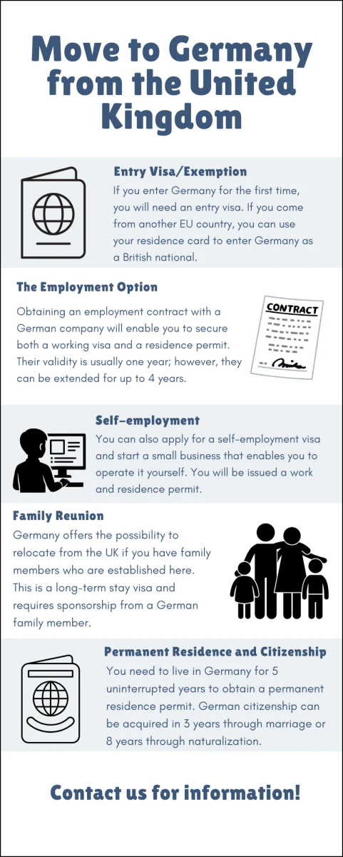 If you are immigrating to Germany from the UK, please find information below about temporary and permanent residence permits as well as the EU blue card: